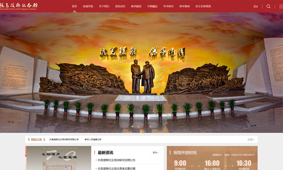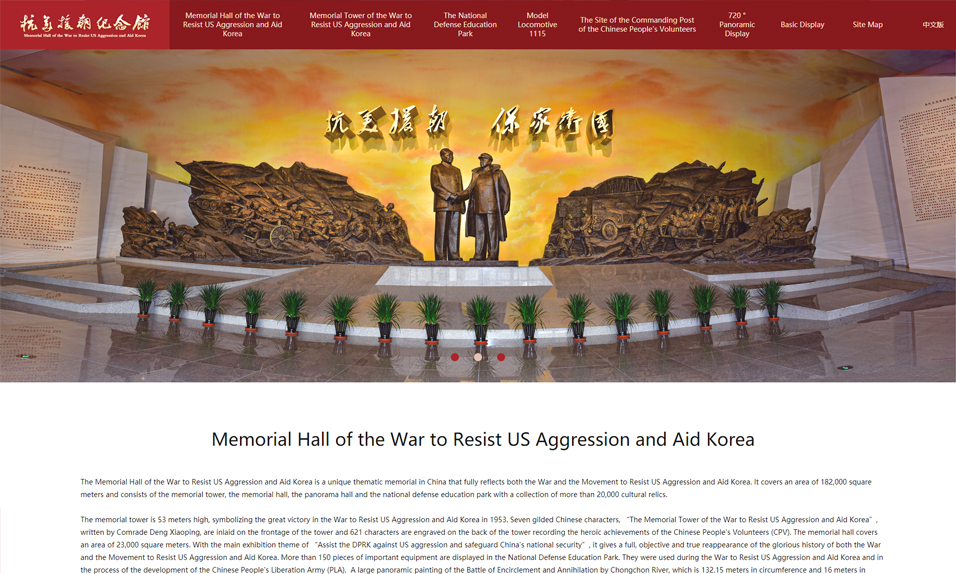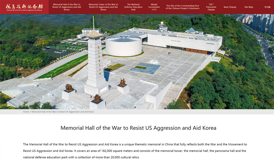 抗美援朝紀念館位于遼寧省丹東市鴨綠江畔的英華山上,與朝鮮民主主義人民共和國新義州市隔江相望,是全國唯一全面反映中國人民抗美援朝戰爭和抗美援朝運動歷史的專題紀念館。